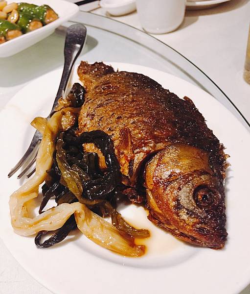 #蔥燒鯽魚:長輩愛吃的一道,老闆娘說最近的鯽魚魚卵很多,所以身體撐的很結實,但吃起來就口感偏乾硬囉