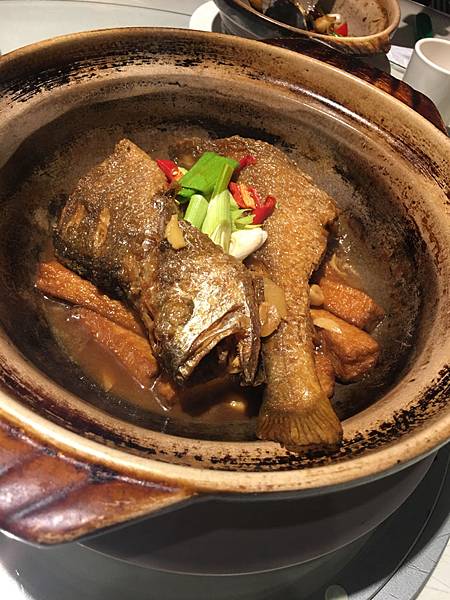 #蔥燒黃魚豆腐:平常在餐廳吃飯很少點魚,今天心血來潮試試看,頗大的一尾魚為了要塞進砂鍋中切成了兩半,豆腐和魚都燒的蠻入味的,還不錯囉