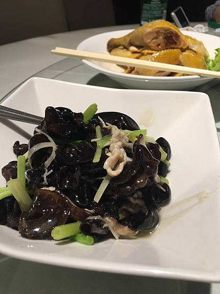 #炒三脆:炒木耳、芹菜、香菇和肉絲,有大火快炒的香氣、微勾芡,調味有點點酸,看起來平凡但很清爽好吃,可惜份量有點少吃不過癮啊