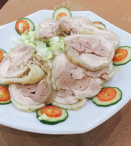 # 紹興醉雞腿:脆皮雞賣完,所幸點個醉雞來吃,沒有雞凍也沒有骨頭,蠻入味的,雞腿肉也軟嫩,好吃!(吃了好幾片才想到要拍照,所以肉缺了一角)