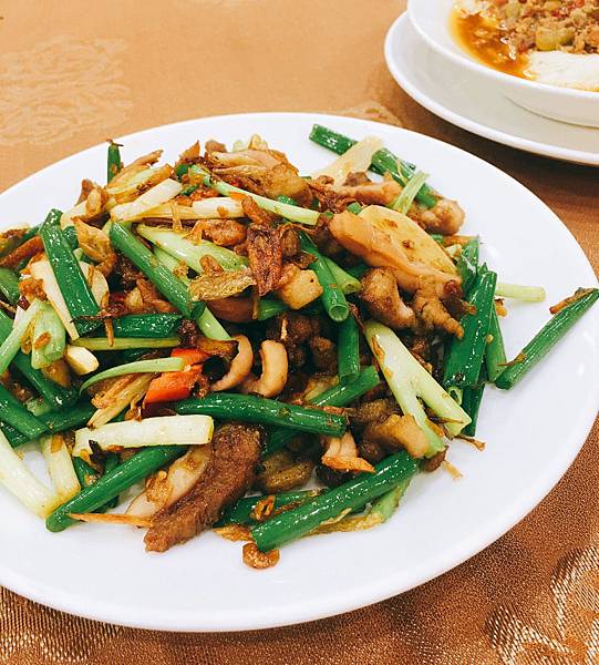 # 客家小炒:醬汁收的剛剛好,每種料都爆的很香,但又不會太乾老,也不會太油膩,一切都很剛好,相當好吃!很少見的加入油蔥酥和韭菜花,跟一般的客家小炒有點不同,是吃過數一數二好吃的小炒!