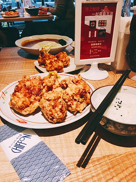 # 傳說中的日式炸雞餐:六塊雞腿肉塊份量很夠,調味很日式風格,咬下很多汁,麵衣也不會太厚重,真的很好吃啊!對我來說六塊有點多,如果點咖喱或烏龍麵炸雞套餐,是附3塊雞塊,這樣配起來比較平衡 順帶一提,咖喱飯也不錯,也是日式風格,料都熬到醬裡面沒有太多整塊配料,美中不足是醬多飯少,不夠配呀