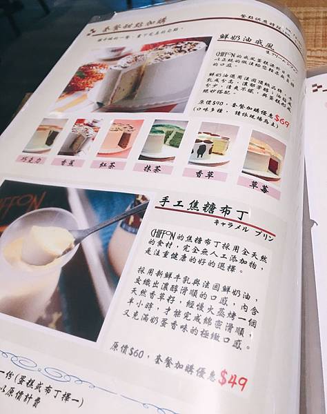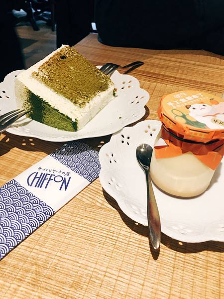 # 套餐點心加點抹茶戚風蛋糕和烤布蕾,我蠻喜歡鮮奶油的,通常只吃紅葉的奶油這間的也蠻清爽不膩的!蛋糕看起來乾乾,其實濕潤度剛好,配上奶油很搭啊 烤布蕾就比較常見,也是香濃好吃的!