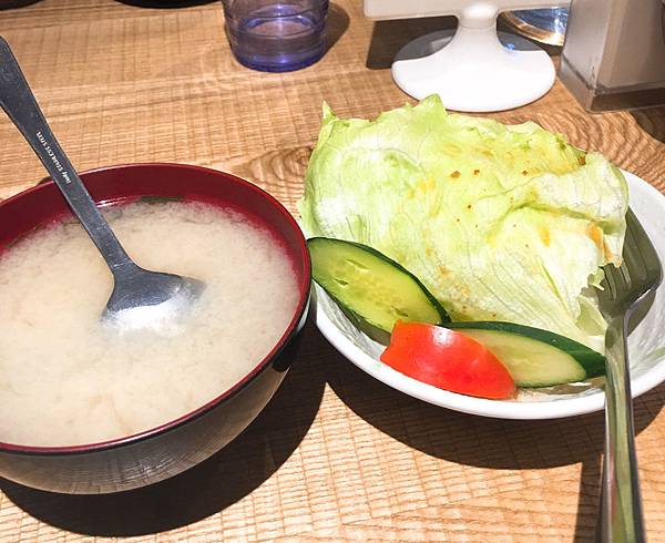 # 套餐附的味增湯和沙拉:非常中規中矩,沒太大記憶點...
